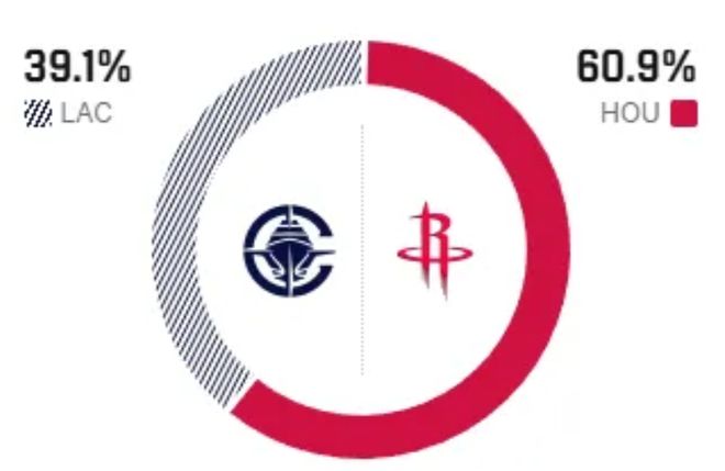 賽前,美媒ESPN對(duì)本場(chǎng)比賽進(jìn)行了勝率預(yù)測(cè),火箭隊(duì)勝率依舊高達(dá)63.4%,快船勝率則僅有36.6% ,差距明顯。