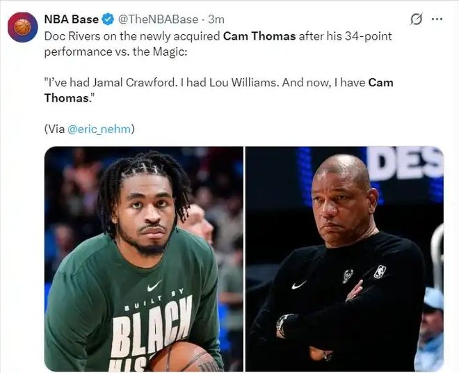 北京時(shí)間2月12日,NBA常規(guī)賽迎來一場(chǎng)復(fù)仇之戰(zhàn)——魔術(shù)坐鎮(zhèn)主場(chǎng),再度迎戰(zhàn)兩天前剛被自己狂勝19分的雄鹿。賽前沒人看好雄鹿能翻身,魔術(shù)剛拿3連勝,28勝24負(fù)穩(wěn)坐東部第7,勢(shì)頭正盛,而雄鹿21勝30負(fù)排在東部第12,深陷泥潭,而且字母哥也不打。可誰能想到,這場(chǎng)本該是魔術(shù)“二連虐”的比賽,最終變成了一個(gè)新人的封神秀——小托馬斯,也就是卡梅隆托馬斯,這位剛剛被籃網(wǎng)裁員,郁郁不得志的年輕人,在自己的雄鹿首秀上狂砍34分,硬生生帶著雄鹿以116-108逆轉(zhuǎn)魔術(shù)。