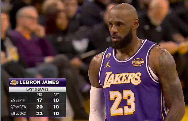 41歲的詹姆斯連續(xù)4場比賽助攻上雙,超越斯托克頓創(chuàng)NBA歷史40歲或以上球員,歷史最長連續(xù)助攻上雙紀(jì)錄。