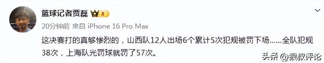 山西12人名單一半被罰下,劉傳興、韓霈瑜、葛昭寶、賈明儒、迪亞洛、秦子龍,全隊38次犯規(guī),送給上海57次罰球。