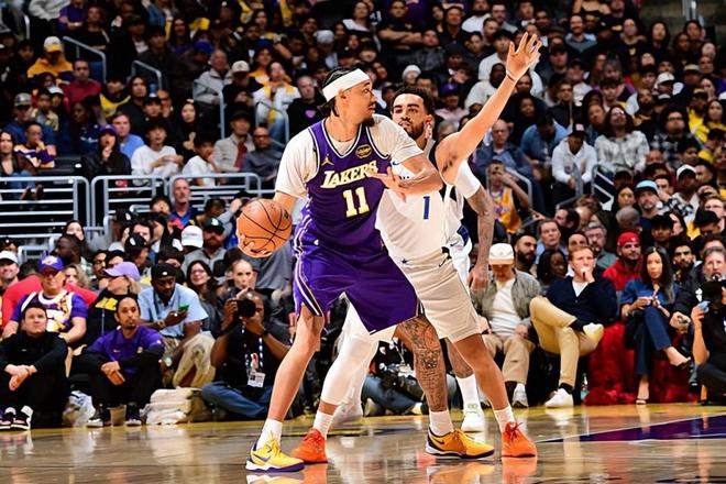本場(chǎng)比賽中,湖人的先發(fā)中鋒賈克森-海斯(Jaxson Hayes)的表現(xiàn)令人刮目相看。海斯全場(chǎng)出場(chǎng)33分41秒,投籃10中8,以超高的效率得到了16分7籃板4助攻3搶斷1蓋帽的數(shù)據(jù),其中還包括了4個(gè)前場(chǎng)籃板,還有1次失誤和4次犯規(guī),正負(fù)值更是達(dá)到了全場(chǎng)最高的+26。海斯在進(jìn)攻端展現(xiàn)出了相當(dāng)不錯(cuò)的籃下得分能力和終結(jié)能力,他在前場(chǎng)籃板爭(zhēng)搶方面的表現(xiàn)非常出色,為球隊(duì)爭(zhēng)取到了大量的二次進(jìn)攻機(jī)會(huì),甚至他還展現(xiàn)出了一定的傳球能力和策應(yīng)能力。除此之外,海斯在防守端的表現(xiàn)同樣算得上是可圈可點(diǎn)的,他利用自己超強(qiáng)的運(yùn)動(dòng)能力在防守端起到了關(guān)鍵的作用。海斯在本場(chǎng)比賽中的表現(xiàn)算得上是攻守兼?zhèn)?,他在?chǎng)上時(shí)球隊(duì)的局面也是一片大好,這也能夠體現(xiàn)在他超高的正負(fù)值上。海斯也為球隊(duì)的這場(chǎng)勝利做出了巨大的貢獻(xiàn)。