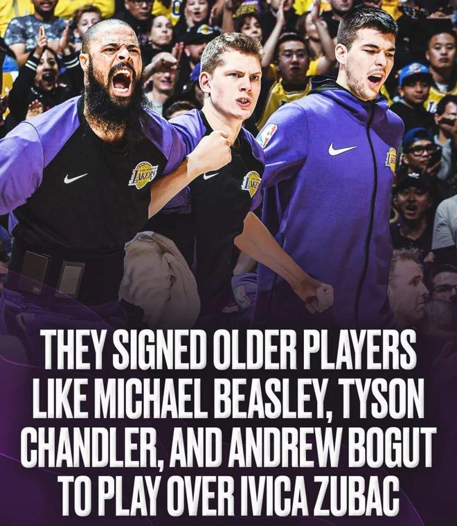7、2018-19賽季,湖人簽下了比斯利,并且寧可讓比斯利打替補(bǔ)中鋒,也不給祖巴茨鍛煉機(jī)會(huì),此外,湖人還簽下了36歲的錢德勒,后者場(chǎng)均上場(chǎng)16.4分鐘,角色和上場(chǎng)時(shí)間均在祖巴茨之前;