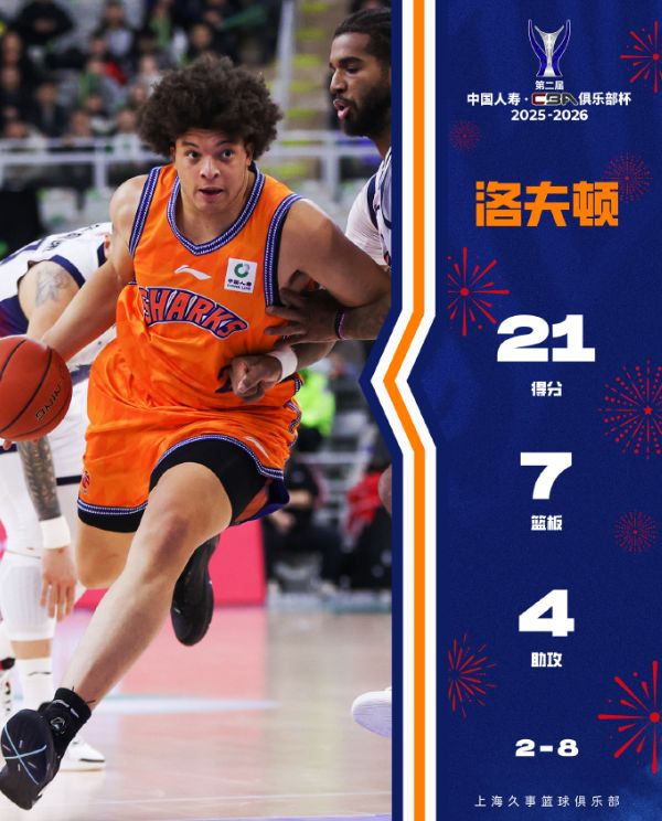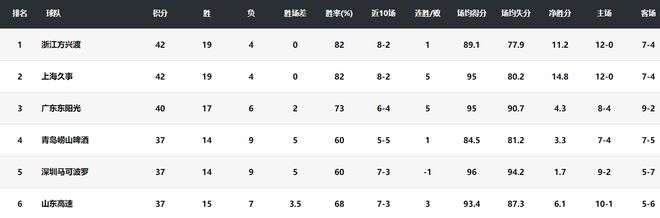 拋開俱樂部杯不算,上海男籃本賽季戰(zhàn)績19勝4負跟衛(wèi)冕冠軍廣廈一樣,上海男籃排在積分榜的第二位。