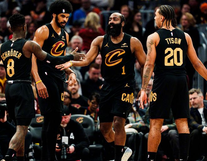 騎士隊從一支NBA最貴球隊搖身一變成為NBA最被低估球隊,關(guān)鍵在于他們得到了哈登,大大提升了球隊的上限。哈登為騎士出戰(zhàn)3場,騎士隊孤獨求敗,哈登的表現(xiàn)有目共睹。3場比賽下來,哈登場均貢獻(xiàn)19.3分+5.3籃板+8.7助攻+1.3蓋帽,三分球命中率高達(dá)42.1%。哈登不僅僅多次在關(guān)鍵時刻命中巨星球,而且還完全盤活了全隊——米切爾得分如砍瓜切菜,場場砍下30+;阿倫連續(xù)3場比賽砍下20+,命中率高達(dá)80.6%,作為對比,阿倫此前17戰(zhàn)僅1場砍下20+;梅里爾也在對陣奇才的比賽中上演生涯之夜,怒砍32分+9記三分球!