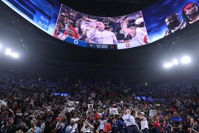 這是一座耗資20億美元的籃球競技場,51排直沖天際的球迷墻,像一群狂熱的信徒在咆哮,歡呼聲如海嘯般吞沒一切,瞬間把這里變成一場屬于籃球的瘋狂派對。抬頭望去,環(huán)繞式的“光環(huán)屏幕”宛如一個巨型LED怪獸——正播放著比賽集錦,仿佛科幻電影里的鏡頭。