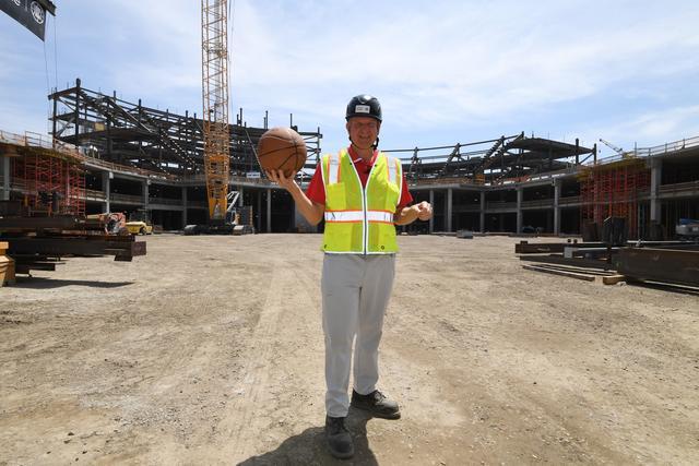 2022年8月的一天,史蒂夫-鮑爾默頭戴黑色建筑安全帽,身穿黃色安全背心,站在工地上的裝卸站臺區(qū)域。當時球館區(qū)域的土地還不太平坦,但他完全清楚這里的相關(guān)布局,甚至可以準確指出客隊更衣室未來的位置。
