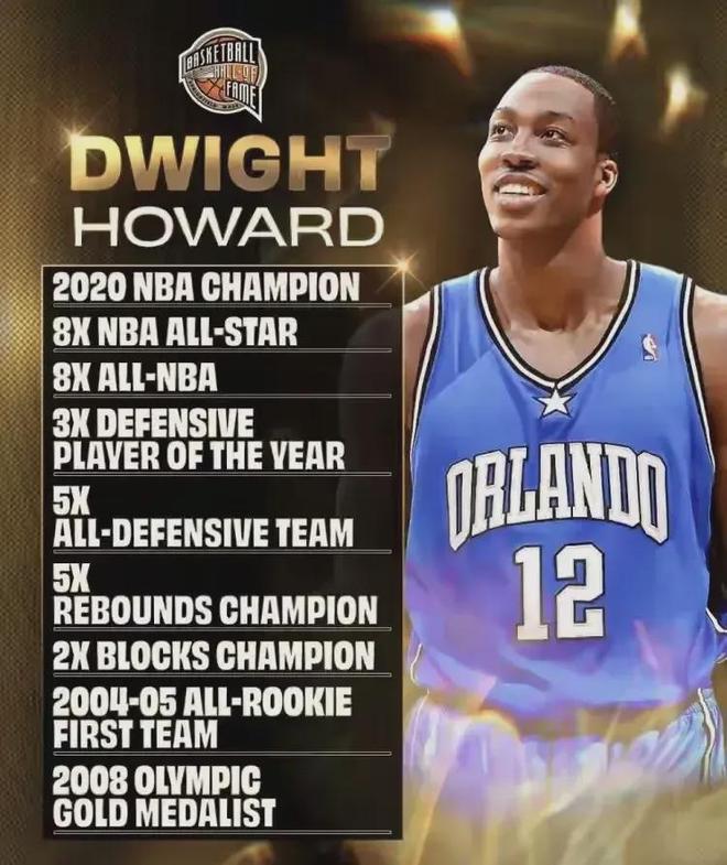 被“強(qiáng)制退役”的霍華德,NBA生涯長(zhǎng)達(dá)18年,期間榮獲3次DPOY、8次最佳陣容&5次最佳防守陣容、5次籃板王、2次蓋帽王、8次全明星,以及1枚奧運(yùn)會(huì)金牌,19-20賽季跟隨湖人拿到唯一一枚總冠軍戒指。