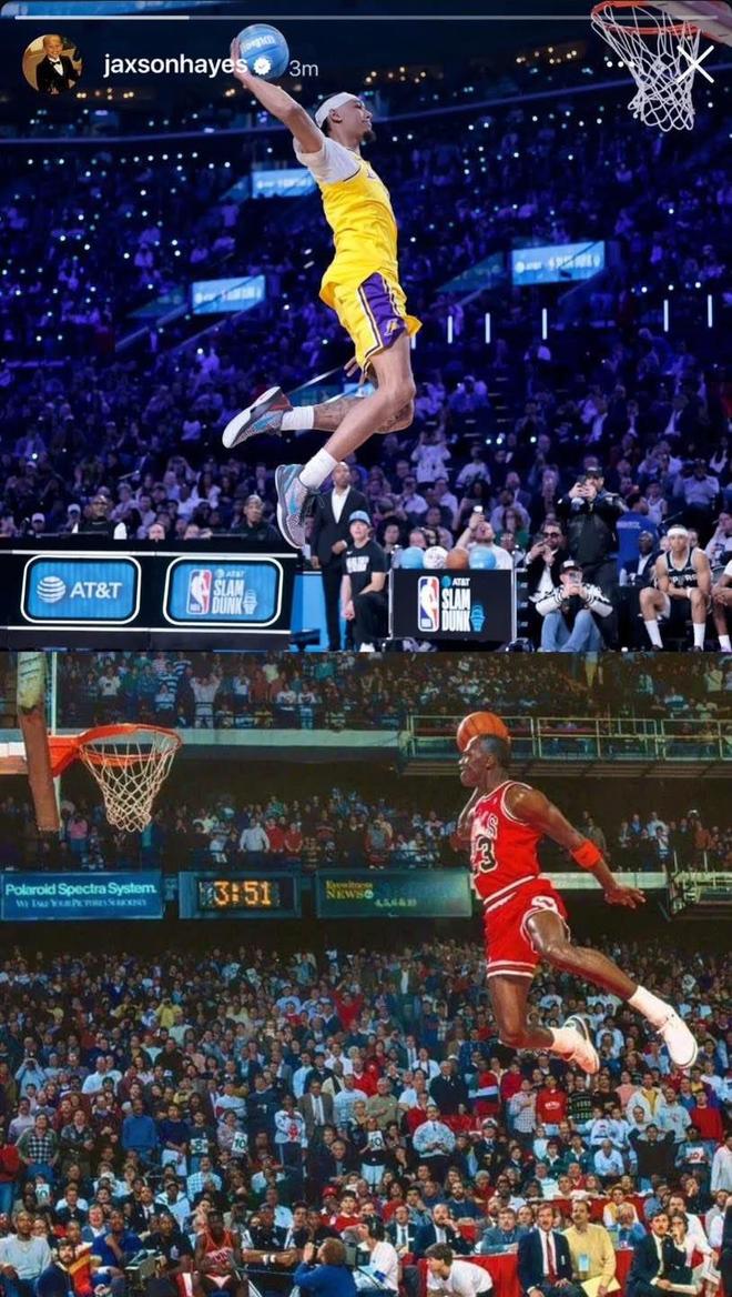 北京時間2月16日,參加完本屆全明星三分大賽的海斯更新社媒,曬圖致敬喬丹。