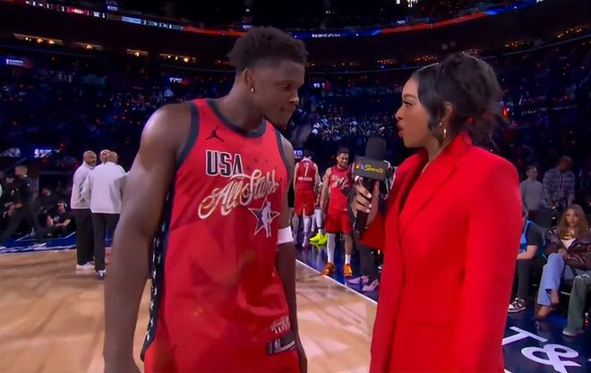 這場(chǎng)決賽蟻人8分鐘,5中3,三分4中2,拿到8分4籃板2助攻,命中率60%,三分命中率50%,因?yàn)楸荣愒缭绲氖夷钏运紱]有打滿全場(chǎng),他拿下的8分是跟霍姆格倫同為星隊(duì)最高。