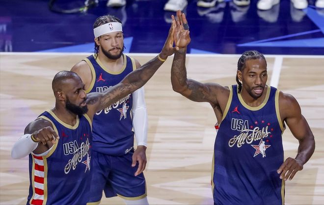再聊聊黑榜。黑榜前二分別給到東契奇和約基奇,表現(xiàn)有起伏很正常,但態(tài)度卻是自己能決定的,很遺憾,東約兩位老師主動放棄了,他們的表現(xiàn)配不上這場盛宴。一直以來都在全明星賽出工不出力的萊昂納德,因?yàn)檫@次賽事在自家主場舉辦,給足了主場球迷面子,是真的滿功率輸出,同為世界隊翹楚的文班亞馬也是全身心投入,約老師和盧卡呢?因?yàn)槭讏龅南麡O怠工,第二場直接被摁在了板凳席上,真的挺掃興的,但凡他們認(rèn)真點(diǎn),文班會這么拔劍四顧心茫然嗎?
