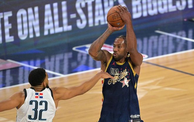紅榜第二當(dāng)屬萊昂納德。被視作奪冠大熱的世界隊前兩戰(zhàn)全敗,如果說和星辰隊一役還能歸咎于運(yùn)氣稍差,那么和條紋隊的惡斗,這純粹淪為了卡子哥個人表演秀的背景板。盡管庫里因傷退出,但他的技能包卻給了萊昂納德,小卡不但裝備“神的武器”,還戴上了萌神的三分瞄準(zhǔn)鏡,12分鐘時間就砍下31分,幫助條紋隊3分險勝,盡管決賽的小卡無力再戰(zhàn),但就沖著單節(jié)31分的表現(xiàn),他就值得一個紅榜。