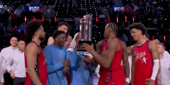 新星隊(duì)特別是決賽更是打出了NBA全明星近年最殘暴的第四節(jié),這幫小年輕全力輸出,狂贏星條隊(duì)47比21。