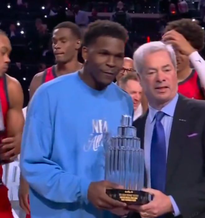 縱觀三支隊(duì)伍,新星隊(duì)也是最多點(diǎn)開花的一隊(duì),他們沒有文班這種內(nèi)線巨無霸也沒有倫納德這種一人成軍,但他們每場比賽都有人站出來,愛德華茲總計(jì)砍下32分9籃板3助攻1搶斷(算三節(jié)累計(jì)數(shù)據(jù))最終加冕全明星賽MVP。