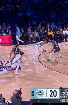 接球晃開(kāi)防守,直奔籃筐爆扣!