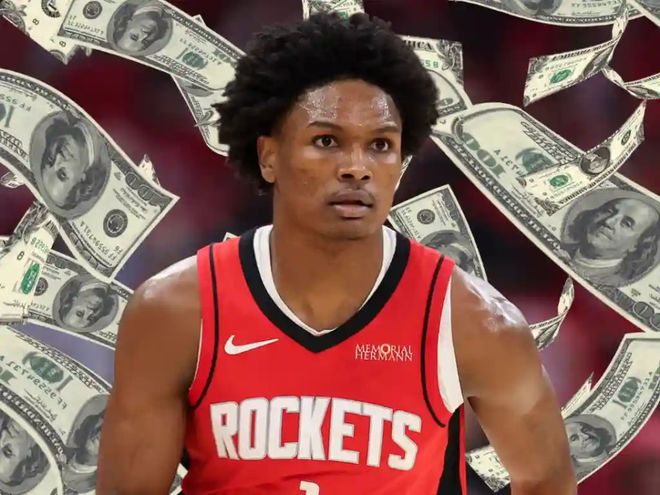 Marks表示,火箭的阿門-湯普森有望在今年夏天和文班亞馬一起,成為第二位簽下新秀頂薪續(xù)約合同的球員。湯普森本賽季的場(chǎng)均得分、助攻和投籃命中率均創(chuàng)下生涯新高,而且當(dāng)他在場(chǎng)時(shí),火箭每百回合凈勝分要多出5分。