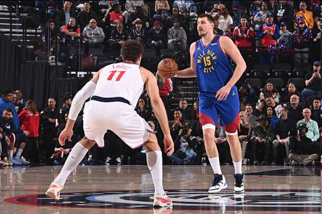 在本場比賽一開始,快船就與掘金開始纏斗,雙方在首節(jié)打得有來有往,快船以25-24稍微領(lǐng)先掘金一分。到了第二節(jié),掘金打出一波小高潮,他們以28-20結(jié)束了第二節(jié)。上半場,掘金以52-45領(lǐng)先對手7分。