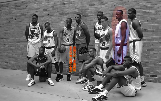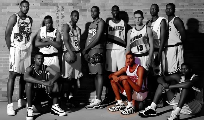 好了,這就是這張經(jīng)典照片上所有的11名球員,有人可能就奇怪了,為何這一屆新秀里最重要的人,狀元秀阿倫-艾弗森不在上面?