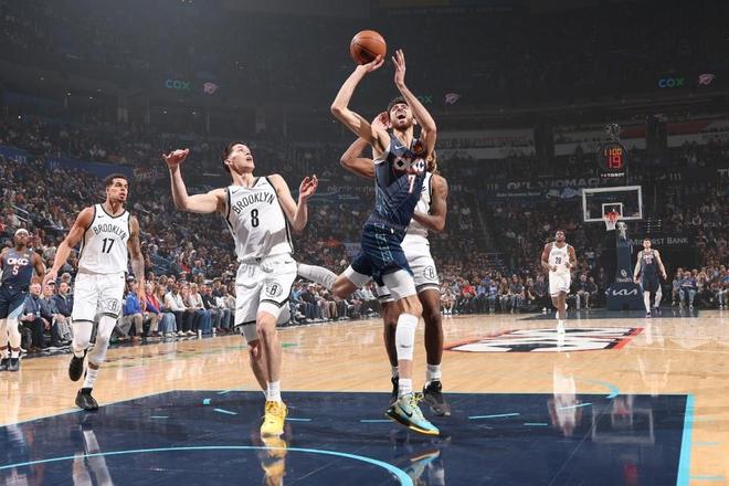 雷霆上一場主場93-110輸給雄鹿,籃網(wǎng)過去兩場連輸步行者與騎士遭遇2連敗。本場雷霆缺少亞歷山大、杰倫與米切爾,籃網(wǎng)缺少克拉克斯頓與威廉姆斯。首節(jié)開局雙方交替領(lǐng)先,雷霆在10-8領(lǐng)先情況下,籃網(wǎng)一波6-0攻勢反超比分,雷霆連得5分奪回領(lǐng)先?;@網(wǎng)多點開花一波9-2攻勢反超6分,雷霆連追4分,首節(jié)結(jié)束雷霆21-23落后籃網(wǎng)。首節(jié)雷霆被限制僅22中6,其中三分9中3,霍姆格倫7分;籃網(wǎng)21中9,其中三分10中1,波特6+3。