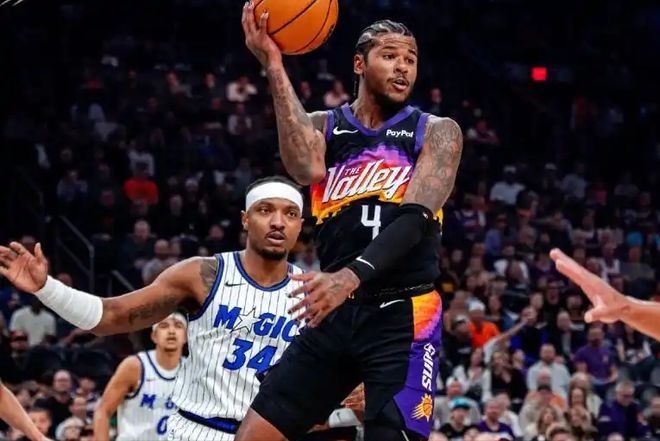 北京時間2月22日,NBA常規(guī)賽上演雙加時鏖戰(zhàn),太陽主場113-110險勝魔術(shù),終結(jié)兩連敗,戰(zhàn)績來到33勝24負,穩(wěn)固西部第7。魔術(shù)落敗后以29勝26負下滑至東部第8。本場兩隊均有核心缺陣,太陽布克休戰(zhàn),魔術(shù)缺少薩格斯與小瓦格納,火箭舊將杰倫·格林壓哨絕殺,魔術(shù)“霸王龍”射手貝恩狂砍34分難救主,湖人舊將古德溫17分成奇兵,成為太陽逆轉(zhuǎn)重要功臣。