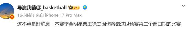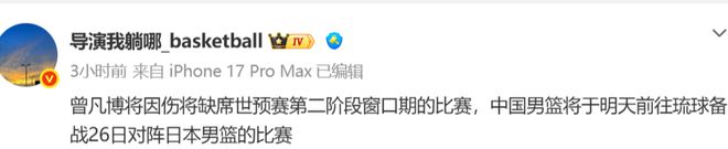 曾凡博缺席也是讓人遺憾的地方了,他最大的麻煩就是傷病多,在第一階段他也遭遇過帶傷作戰(zhàn)。就小道消息曝光,他不只是腰傷,還有充血情況,最終無緣也是無奈。在第一階段最后幾場比賽曾凡博的狀態(tài)明顯回暖了,攻守都在保持復(fù)出。但如果那段時間曾凡博不打,可能他的恢復(fù)會好一些。也希望未來這段時間他的傷勢可以盡快痊愈吧,現(xiàn)在國家隊鋒線還是太吃力了,這對于男籃的考驗會非常大。