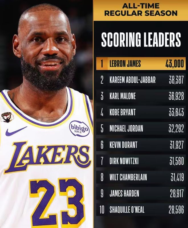 北京時(shí)間2月23日,NBA2025-26賽季常規(guī)賽上演聯(lián)盟焦點(diǎn)大戰(zhàn),洛杉磯湖人隊(duì)坐鎮(zhèn)主場(chǎng),迎戰(zhàn)宿敵波士頓凱爾特人。讓人期待的是,詹姆斯生涯總得分已達(dá)到42988分,距離史無(wú)前例的43000分神跡大關(guān)僅差12分,真是越老越妖了。