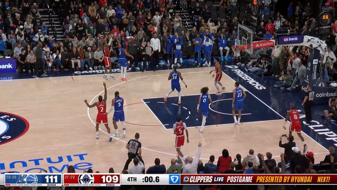 常規(guī)賽,快船主場(chǎng)109-111不敵魔術(shù)。