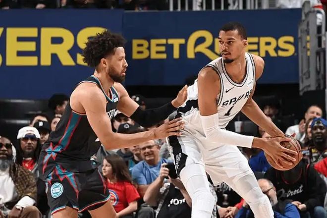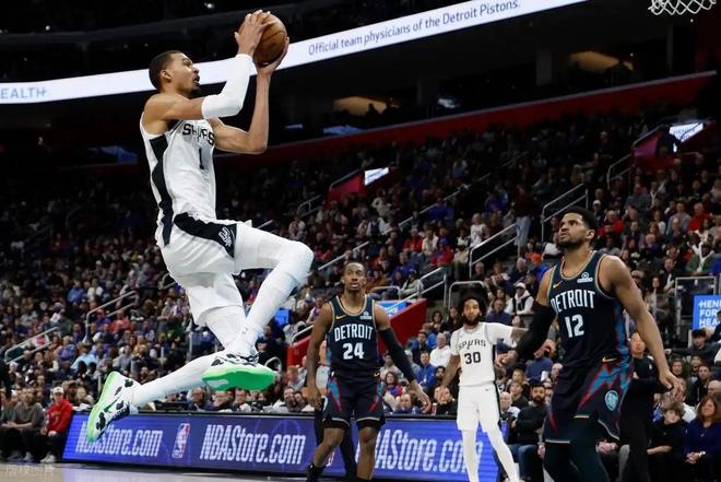 全場(chǎng)比賽下來(lái),馬刺三人組的表現(xiàn)堪稱完美。文班亞馬首發(fā)登場(chǎng)35分半鐘,投籃16中6,三分5中2,砍下21分17籃板4助攻6蓋帽的全面數(shù)據(jù),攻防一體的表現(xiàn)展現(xiàn)出超級(jí)巨星的潛質(zhì)。作為本場(chǎng)比賽的“奇兵”,賽季場(chǎng)均14.1分的瓦塞爾,今天14投10中,其中三分球11中7,罰球2中1,高效砍下28分2籃板4助攻,正負(fù)值+11,單場(chǎng)7記三分追平吉諾比利,并列馬刺隊(duì)史第二位,每當(dāng)球隊(duì)被追分時(shí),他都能命中關(guān)鍵三分,用外線火力澆滅活塞的反撲希望。