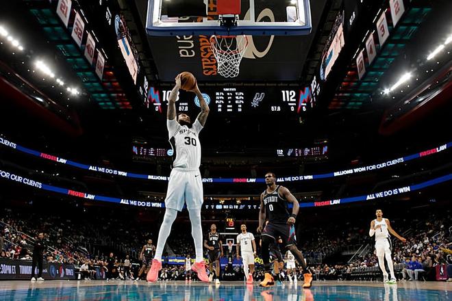 本場(chǎng)比賽中,馬刺的先發(fā)鋒線大將朱利安-尚帕尼(Julian Champagnie)的表現(xiàn)又一次令人刮目相看。尚帕尼全場(chǎng)出場(chǎng)36分26秒,投籃12中6,三分線外8中5,得到了17分6籃板1助攻1搶斷2蓋帽的數(shù)據(jù),還有1次失誤和3次犯規(guī),正負(fù)值為+9。尚帕尼在進(jìn)攻端的效率依然非常穩(wěn)定,他也是將自己在外線投籃方面的表現(xiàn)完全發(fā)揮了出來(lái),他也是抓住了不多的機(jī)會(huì)得到了不少分?jǐn)?shù),在進(jìn)攻端為球隊(duì)提供了不少的支持。尚帕尼在防守端的表現(xiàn)同樣是可圈可點(diǎn)的,他也是將自己出色的個(gè)人防守能力完全發(fā)揮了出來(lái)。尚帕尼在本場(chǎng)比賽中可以說(shuō)是展現(xiàn)出了優(yōu)秀3D類(lèi)型鋒線球員的水準(zhǔn),在攻防兩端都起到了關(guān)鍵的作用,這也為球隊(duì)的勝利做出了巨大的貢獻(xiàn)。