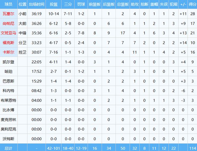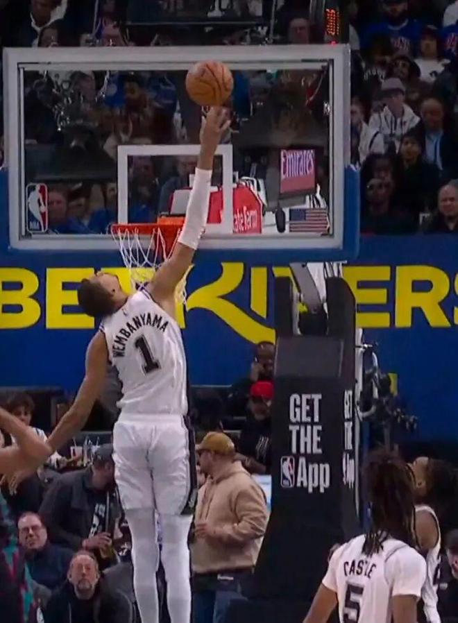 文班亞馬(23屆狀元)防守端影響力巨大,屢次讓21屆狀元坎寧安吃癟,后者全場(chǎng)出手26次僅中5球得到16分6板10助2斷3帽,正負(fù)值-18全隊(duì)最低。