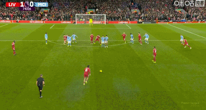 在英超第25輪的焦點戰(zhàn)中,利物浦主場迎戰(zhàn)曼城。上半場雙方互交白卷,下半場雙方蓄勢待發(fā)。第73分鐘,B席在與赫拉芬貝赫爭搶的時候犯規(guī),裁判判罰任意球。罰球位置距離球門較遠,且位置偏正。第74分鐘,索博斯洛伊操刀主罰。皮球穿過人墻,劃出精彩的弧線直奔上角。把守球門另一側(cè)的多納魯馬來不及做出反應(yīng),只見皮球應(yīng)聲入網(wǎng)。