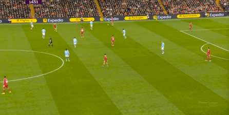于是,在真的通過(guò)進(jìn)攻畫(huà)面調(diào)動(dòng)起場(chǎng)上的情緒之后,利物浦開(kāi)始能將壓力施加到曼城的后衛(wèi)身上了: