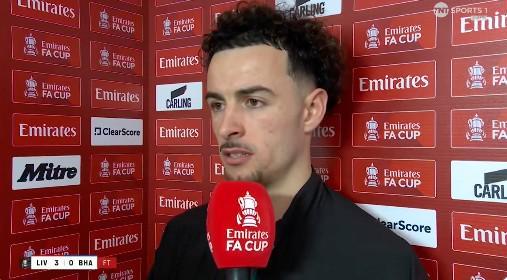 英格蘭足總杯第4輪,利物浦主場3-0戰(zhàn)勝布萊頓,利物浦球員瓊斯賽后接受了TNT體育的采訪。