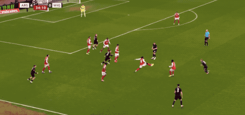 上半場結束,阿森納用了短短的27分鐘,就完成了4個進球。