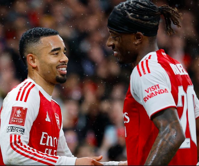 第23分鐘,馬杜埃凱在邊路的過人拍案叫絕,薩卡送出傳中,熱蘇斯包抄,泰勒不慎自擺烏龍。