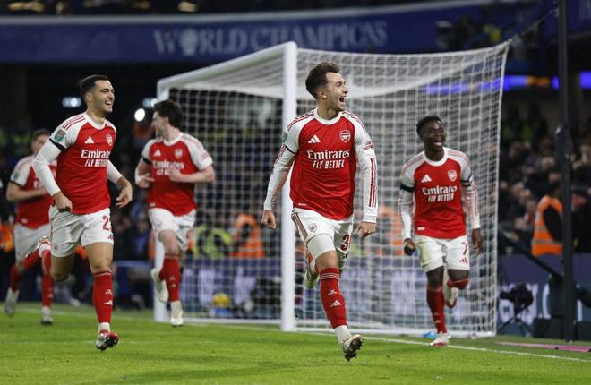 此役,阿森納做出了大幅度輪換,頭號球星薩卡以隊(duì)長身份首發(fā)出戰(zhàn),與馬杜埃凱、馬丁內(nèi)利和熱蘇斯組成了前場進(jìn)攻四重奏。面對在英甲只排名第22的維岡競技,阿森納展現(xiàn)了高出一籌的實(shí)力。開場11分鐘,埃澤擺脫防守后送出直塞,馬杜埃凱單刀赴會將球打進(jìn),阿森納1-0打破僵局。8分鐘后,埃澤再送助攻,馬丁內(nèi)利殺入禁區(qū)完成破門,阿森納2-0擴(kuò)大比分領(lǐng)先優(yōu)勢。第23分鐘,熱蘇斯門前搶點(diǎn)迫使亨特自擺烏龍,比分再度被改寫。4分鐘后,內(nèi)爾高長傳,熱蘇斯單刀破門。阿森納16分鐘4球,將比賽徹底打花。