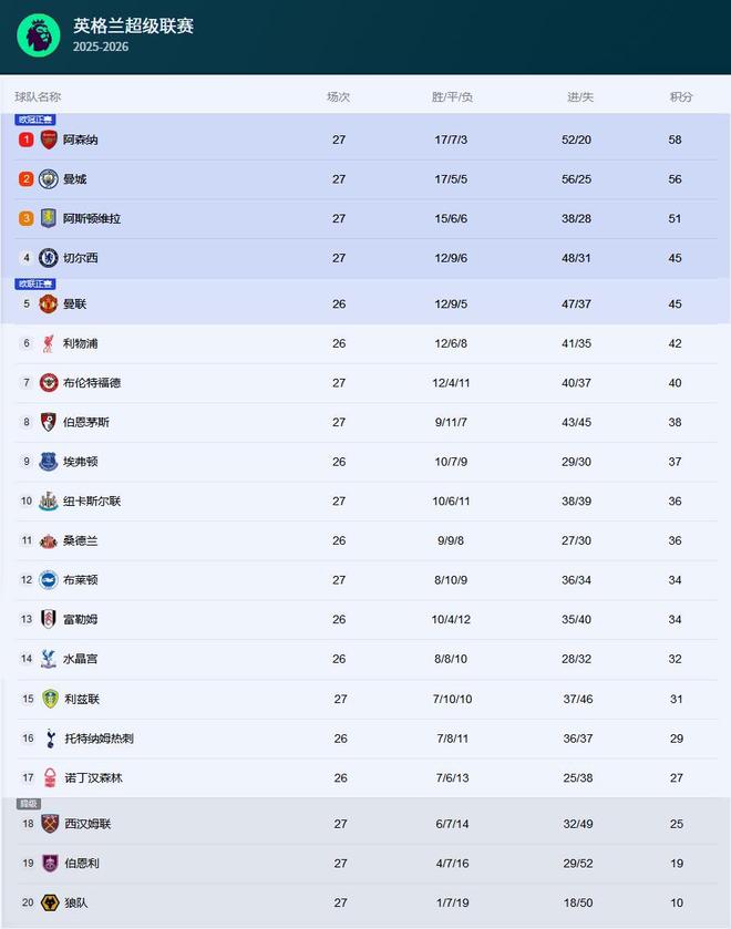 隨著本場(chǎng)比賽的結(jié)束,曼城在前27輪戰(zhàn)罷只落后領(lǐng)頭羊阿森納2個(gè)積分,由于雙方還有一次直接對(duì)話,這也讓本賽季的英超冠軍爭(zhēng)奪戰(zhàn)懸念重啟。