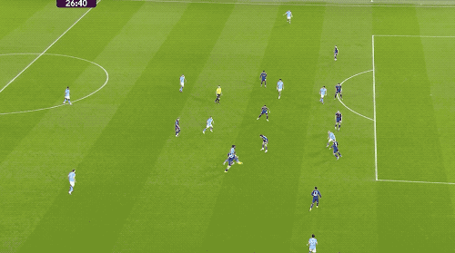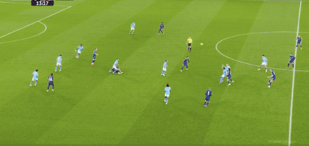 第14分鐘,曼城打出快速反擊,哈蘭德巧妙做球,馬爾穆什送出助攻,奧萊利打破僵局。