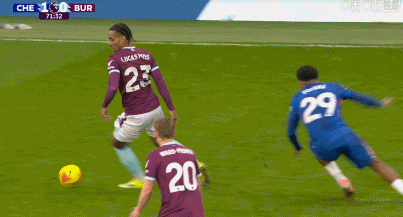 第39分鐘,里斯-詹姆斯斷球被判犯規(guī),隨后與漢尼拔-梅布里發(fā)生小摩擦