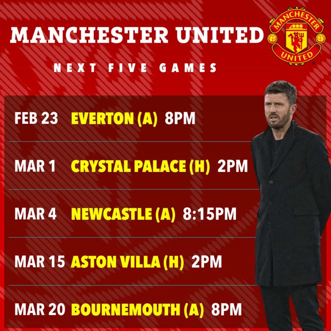 與埃弗頓的比賽后,曼聯(lián)將遭遇水晶宮、紐卡斯?fàn)?、維拉和伯恩茅斯,其中與維拉的比賽可能直接關(guān)系英超季軍的歸屬。