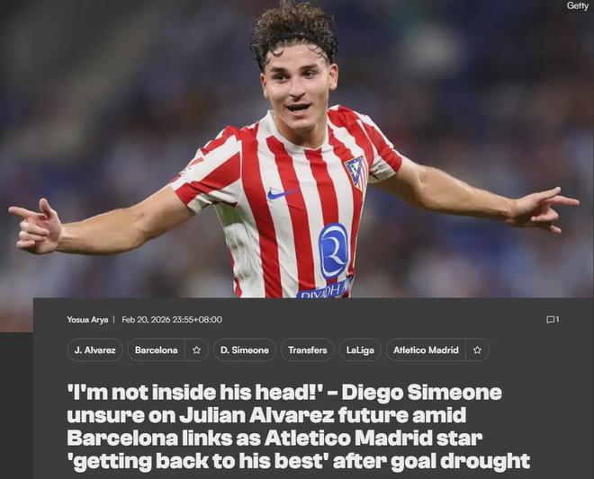 阿爾瓦雷斯和巴薩的傳聞日益密切,而馬競(jìng)主帥西蒙尼似乎對(duì)此無(wú)能為力,他表示自己也不知道阿根廷人心里的想法。