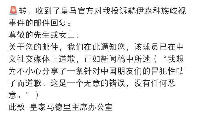 從維尼修斯被種族歧視的鼎力支持,到赫伊森社媒分享種族歧視內(nèi)容卻不下場(chǎng)回應(yīng)。