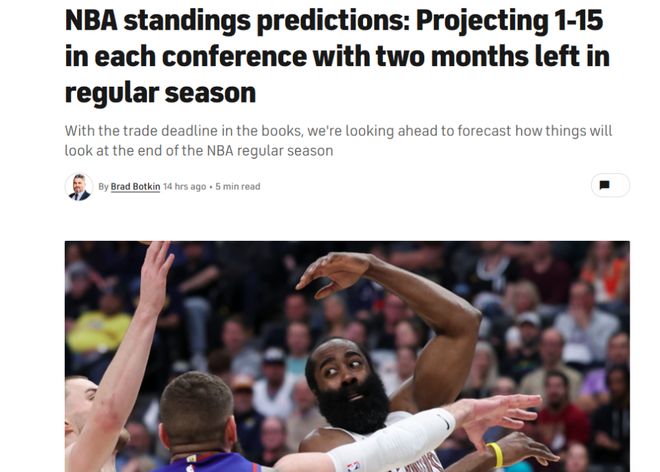 美媒預(yù)測(cè)東西部最終排名!騎士拿下哈登升第2 一數(shù)據(jù)致火箭被看衰