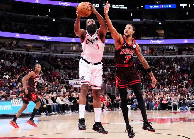 終結(jié)6連勝!哈登24+5+6快船狂輸公牛28分 被轟25記三分