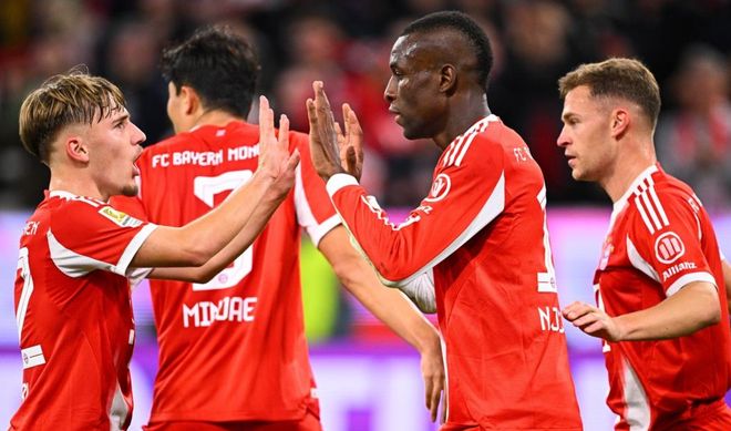 拜仁排出4231陣型。尼古拉-雅克松頂在最前面??枴⒏窦{布里和比朔夫聯(lián)袂出擊。基米希和格雷茨卡組成雙后腰。萊默爾、約納坦-塔、金玟哉和格雷羅4后衛(wèi)首發(fā)出戰(zhàn)。諾伊爾擔(dān)任首發(fā)門將。哈里-凱恩、奧利塞、魯伊斯-迪亞斯和帕夫洛維奇都坐在替補(bǔ)席待命。