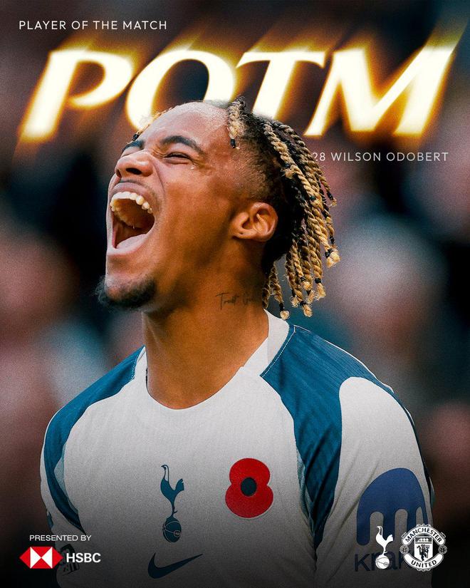 替補(bǔ)登場送助攻,奧多貝爾當(dāng)選與曼聯(lián)一役熱刺隊(duì)內(nèi)最佳球員