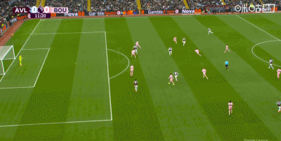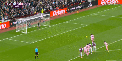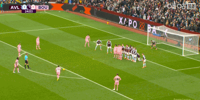 第28分鐘,正反手教學,布恩迪亞位置相近的任意球直接破門,維拉1-0