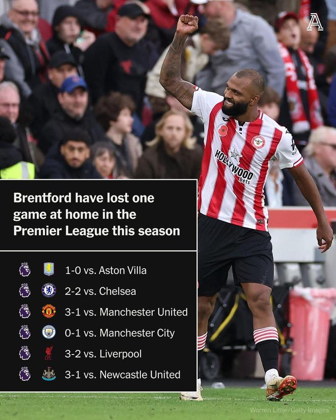 賽后根據(jù)統(tǒng)計(jì),雖然布倫特福德本賽季客場(chǎng)成績(jī)不佳(1勝4負(fù)),但他們?cè)谥鲌?chǎng)已經(jīng)先后斬落了阿斯頓維拉、曼聯(lián)、利物浦以及紐卡斯?fàn)柭?lián),此外他們還戰(zhàn)平了切爾西,期間他們?cè)谥鲌?chǎng)唯一的一場(chǎng)敗仗是10月5日0-1不敵曼城。