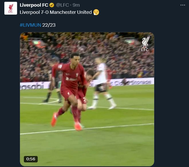 雷速體育10月18日訊 新賽季英超首回合“雙紅會(huì)”即將在北京時(shí)間明晚23:30打響,賽前,利物浦官方社媒還特別發(fā)布了22/23賽季,利物浦主場(chǎng)7-0狂勝曼聯(lián)的經(jīng)典名局。