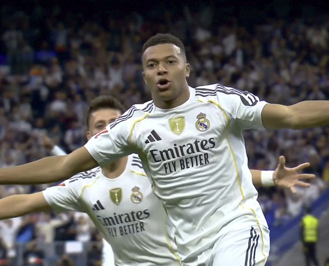 本場比賽第14分鐘,姆巴佩禁區(qū)外不停球凌空射門打出一腳技驚四座的世界波,進球后的姆巴佩也是興奮慶祝,可惜越位了。第22分鐘,貝林厄姆輕巧擺脫防守,送出一腳直塞球,助攻姆巴佩單刀推射破門,這球沒越位,皇馬領先。姆巴佩連續(xù)4場西班牙國家德比取得進球,9次面對巴薩已攻入12球。姆巴佩連續(xù)7輪西甲進球,刷新個人紀錄。
