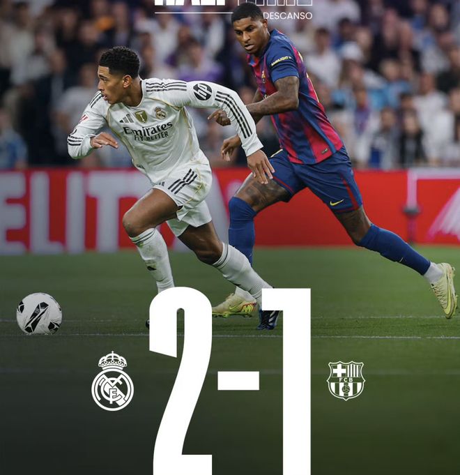 第37分鐘,居萊爾在后場處理球拖沓,被巴薩搶斷,拉什福德助攻費爾明進球,1-1!第43分鐘,維尼修斯在左路強突后傳中,米利唐頭球擺渡到門前,貝林厄姆輕松打空門進球,皇馬再次領先。上半場結束皇馬2-1,皇馬的狀態(tài)明顯更好,尤其是幾名攻擊手,巴薩防線略顯狼狽。下半場第52分鐘,貝林厄姆造點后,姆巴佩主罰質量不高,踢了一個半高球,而且角度也比較正,被什琴斯尼撲出。貝林厄姆為皇馬打入本場第3粒越位進球,巴薩再次逃過一劫。